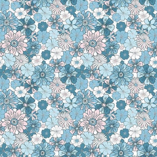 BOMULD – POPLIN – BLOMSTER BLÅ/ROSA
