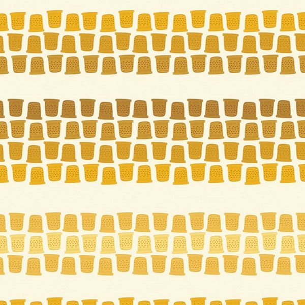 Mærker bomuld, fingerbøl, gold, gul, patchwork, poplin