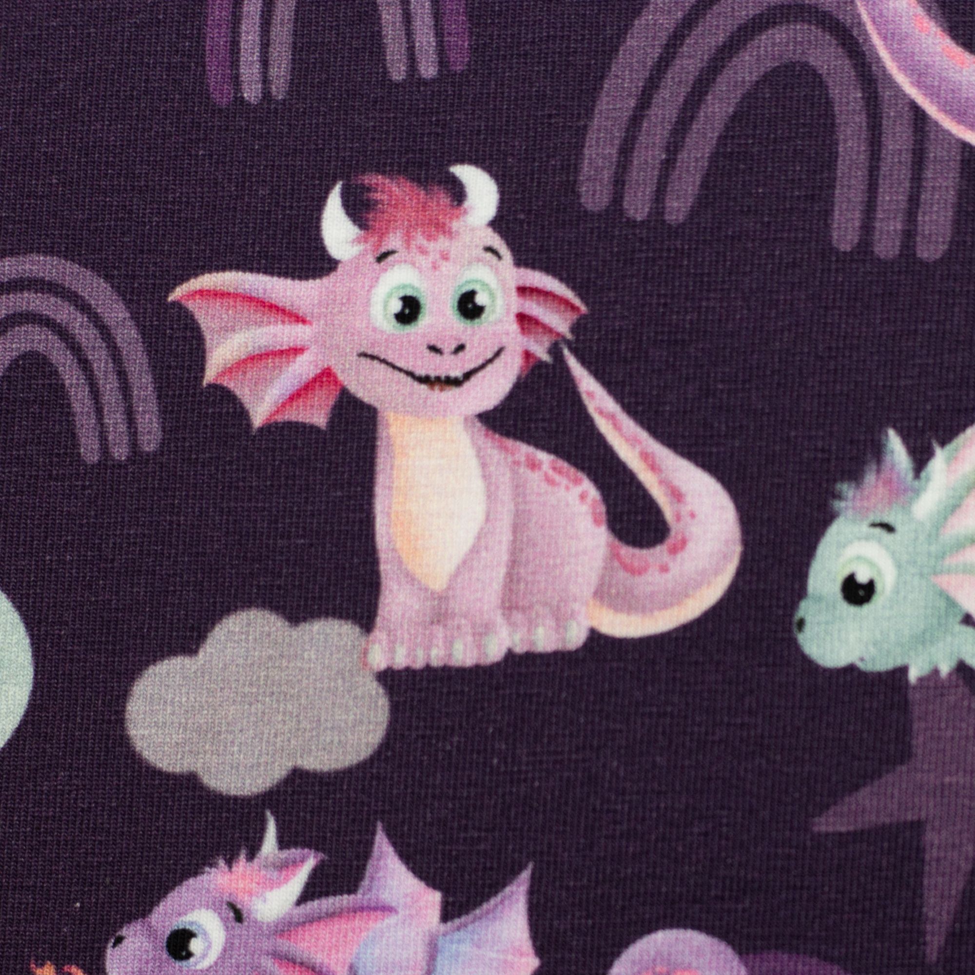 Mærker bomuldsjersey, drage, drager, dragon, jersey, lilla, regnbue, regnbuer, stjerner