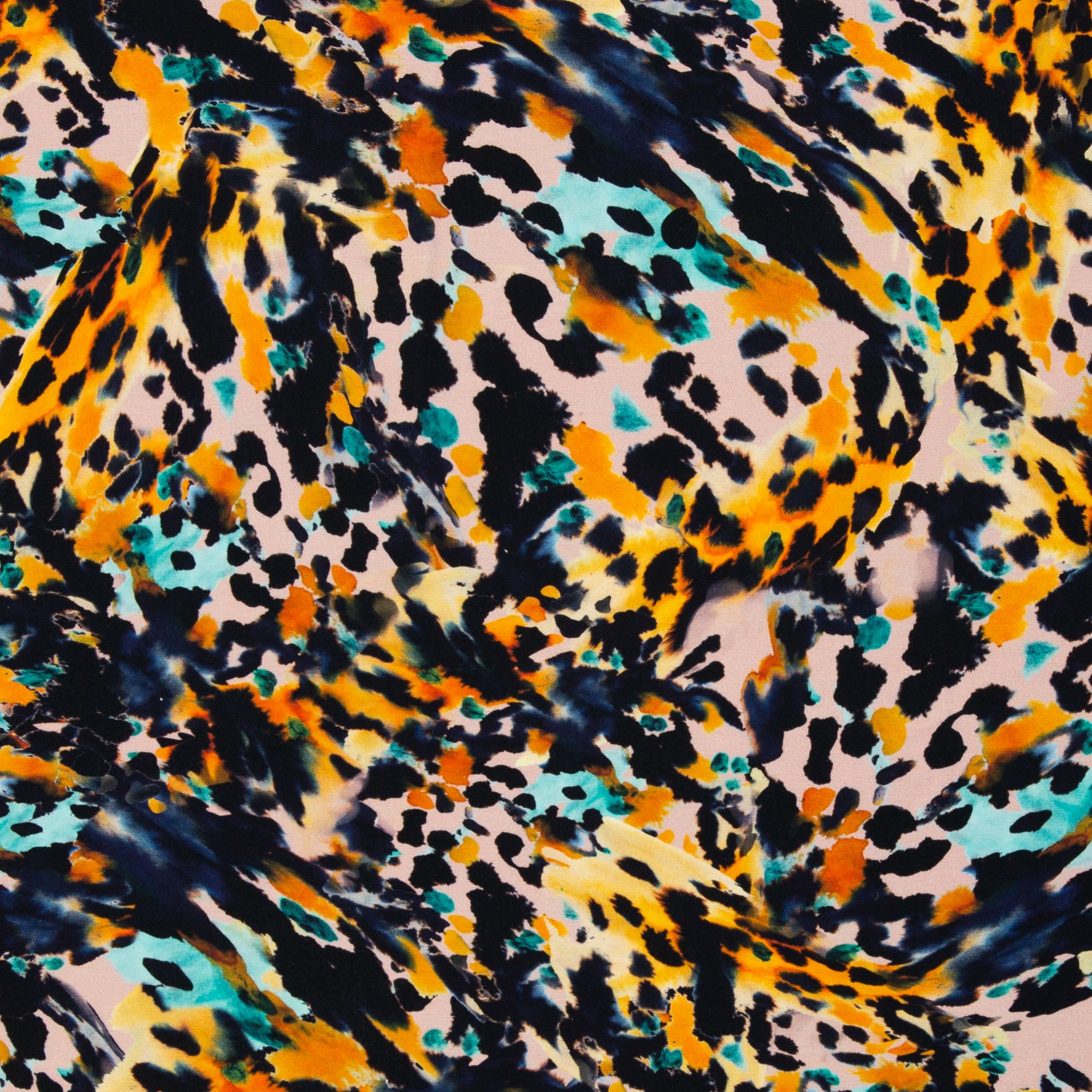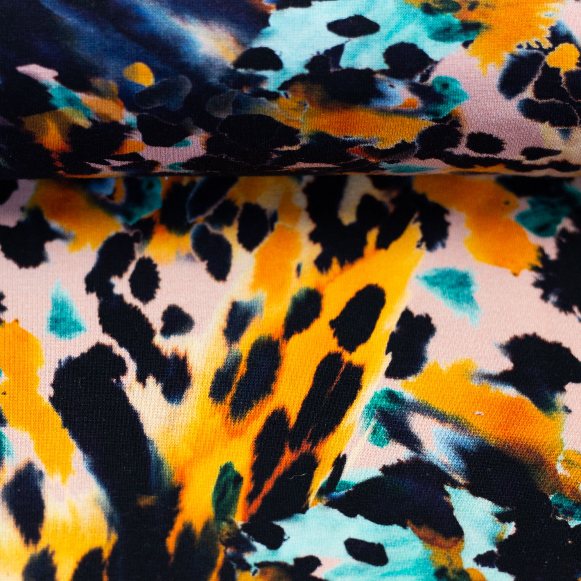 Mærker blå, bomuld, bomuldsjersey, gul, jersey, leopard, modal, pletter, print