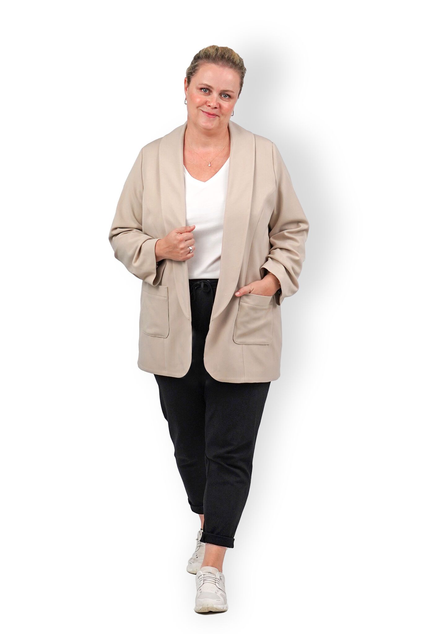 Blazermønsteret med sjalkrave er perfekt til at sy en elegant dameblazer.