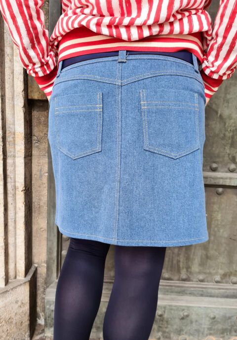 Denim-nederdelen er en tidløs klassiker, der aldrig går af mode. Kombiner den med en luftig top og sandaler om sommeren, eller med en chunky sweater, strømpebukser og støvler om vinteren, og du vil altid være velklædt. Stoffer med en lille mængde elastan er ideelle til denne nederdel. Den er syet på traditionel vis med lynlås og har endda det klassiske fem-lommers design.