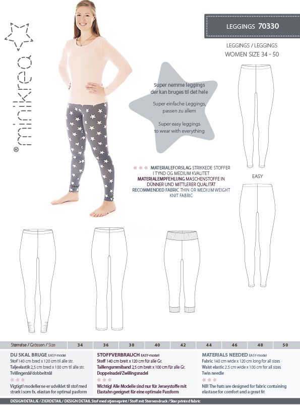 Mønsteret indeholder et mønsterark i fuld størrelse, syinstruktion og oversættelser.