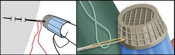Spidsen er stiv og med hak, så nålen ikke kan glide af.